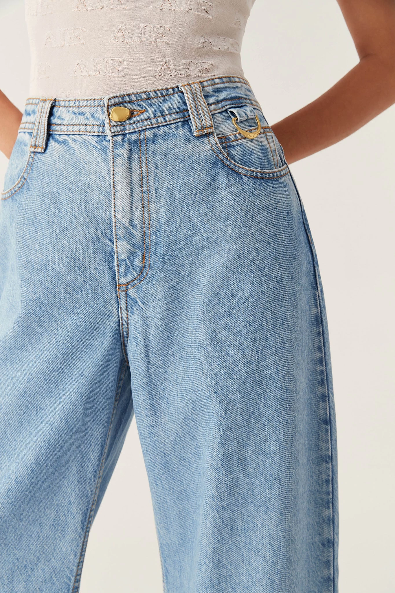 - Classic denim topstitching