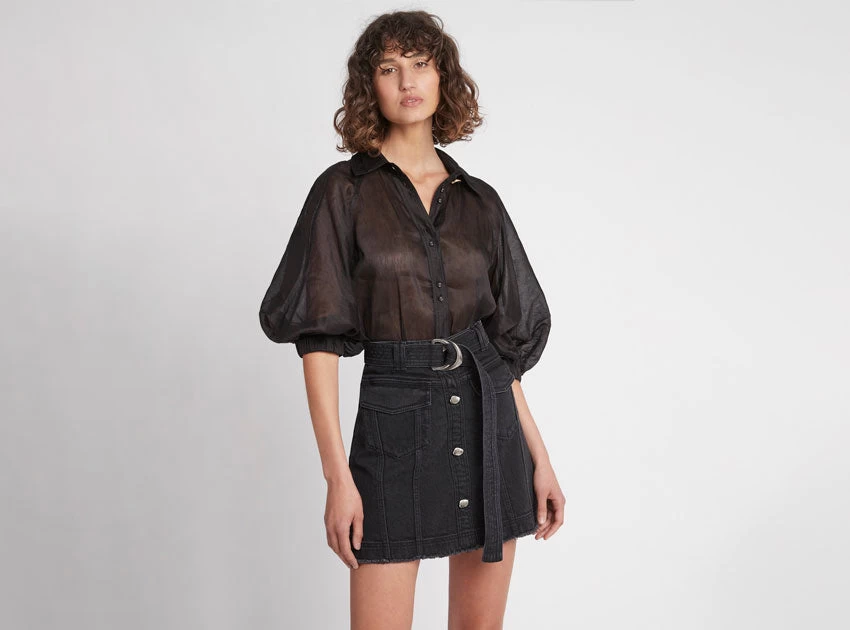 - Black denim mini skirt