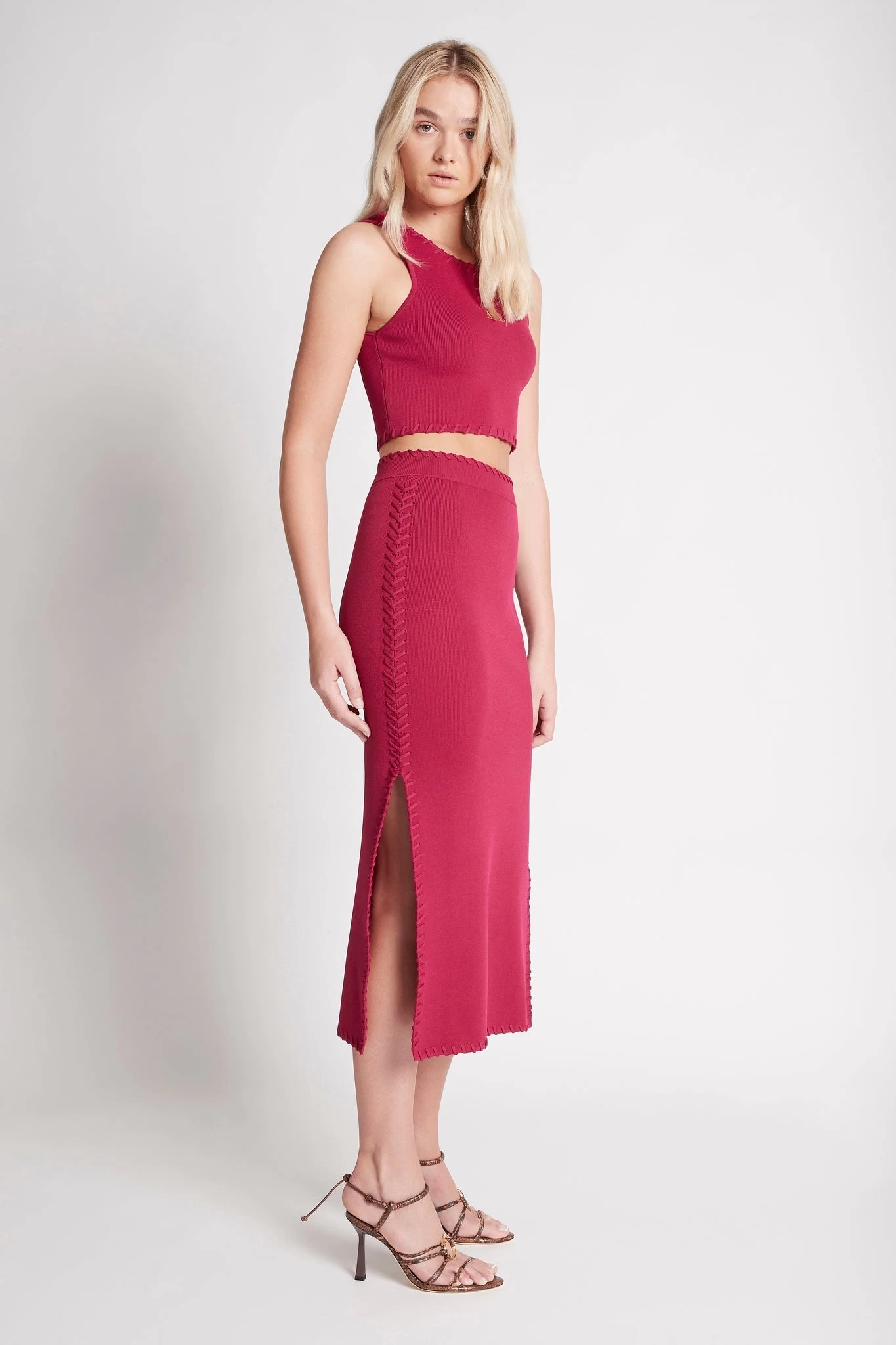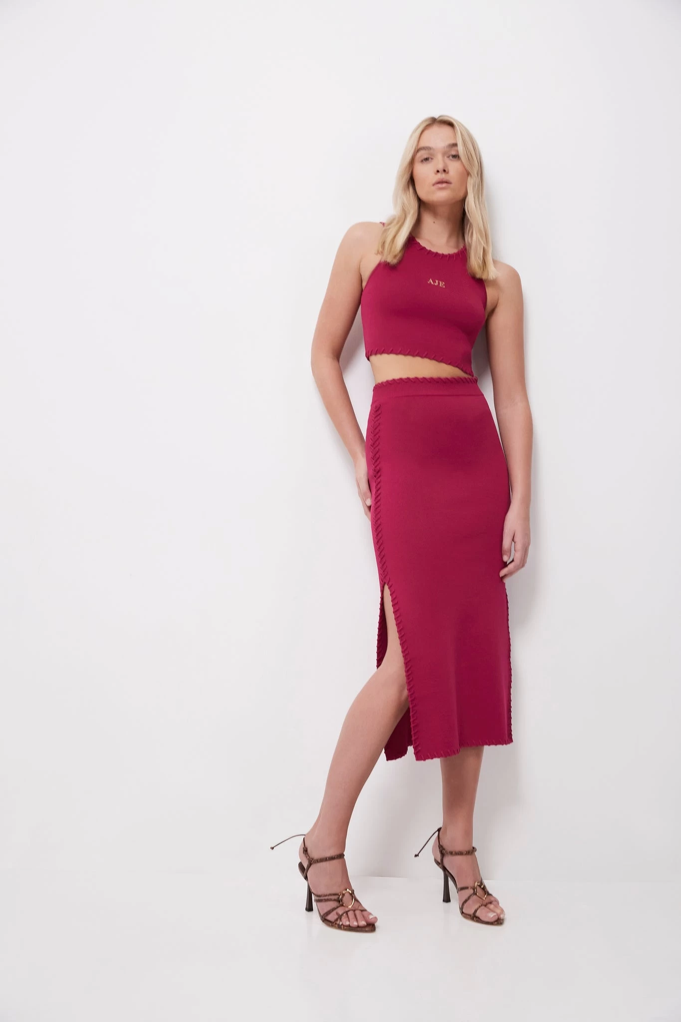 - Fitted mid length skirt