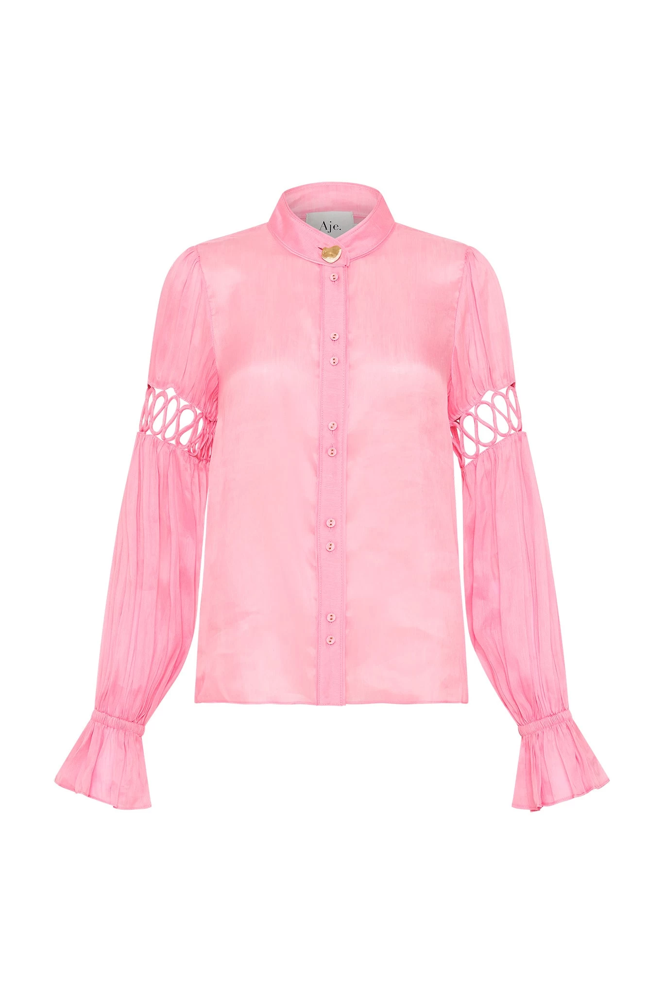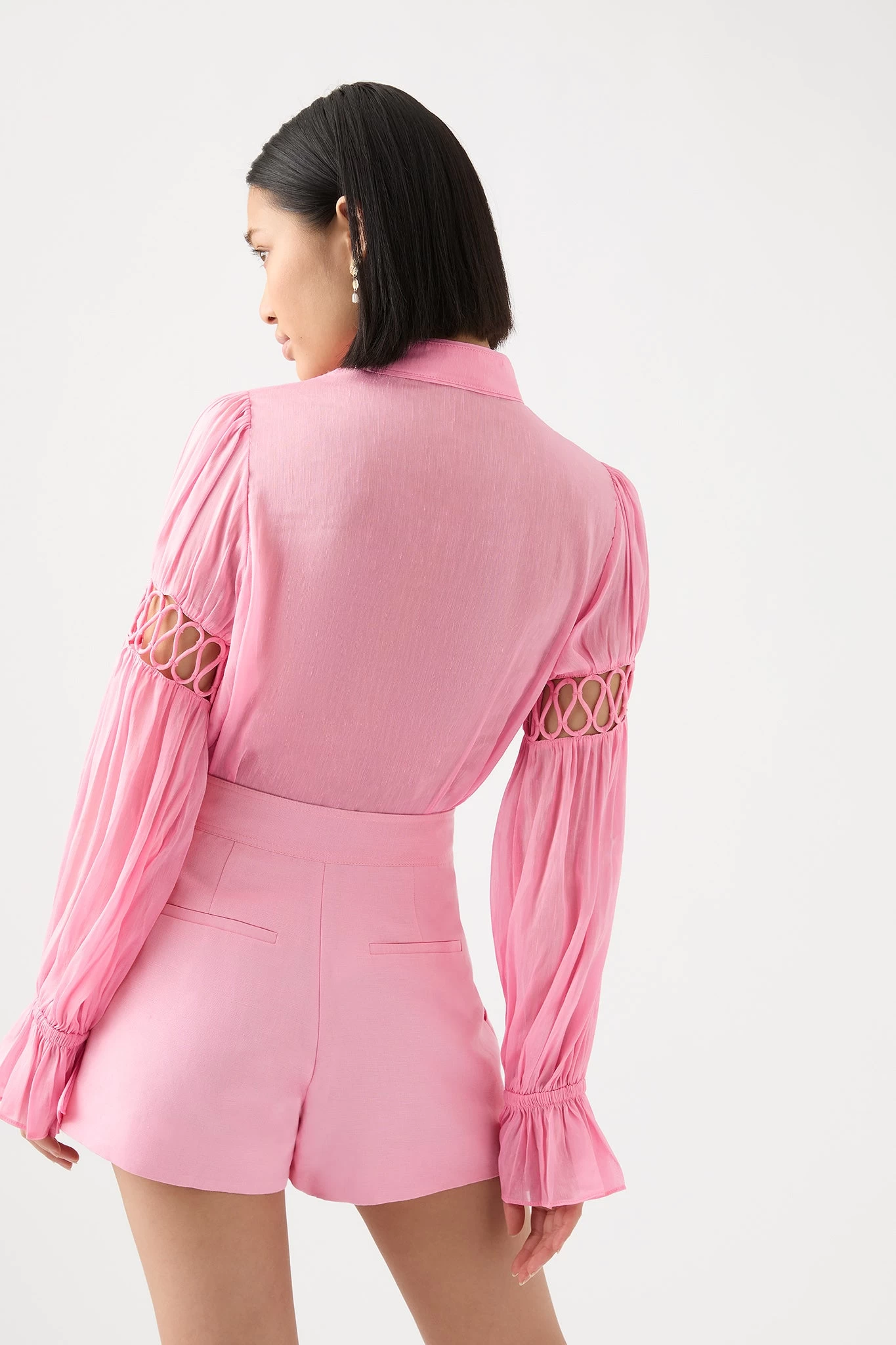 - Blouson sleeves with fluted cuffs
