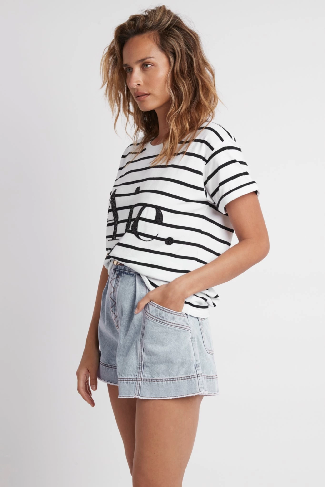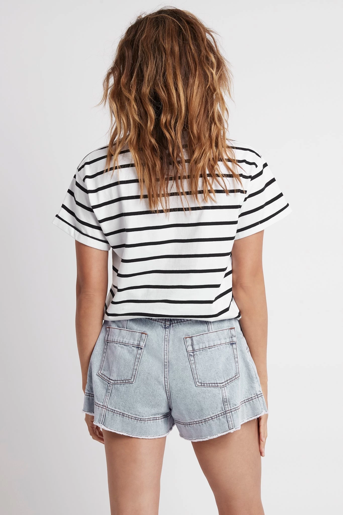 - Raw cut detailing along the hem