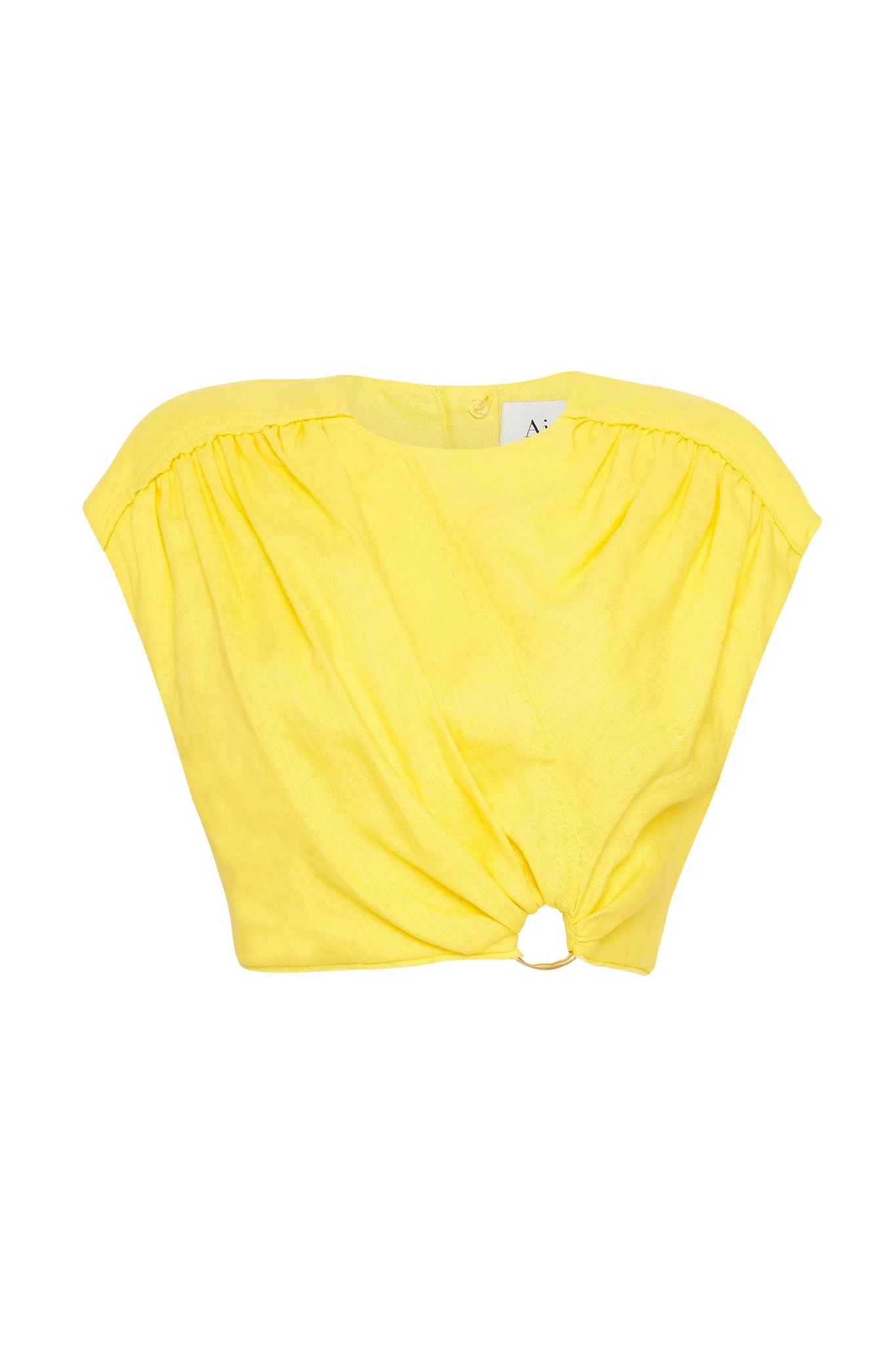 - Cropped length with metal ring detail