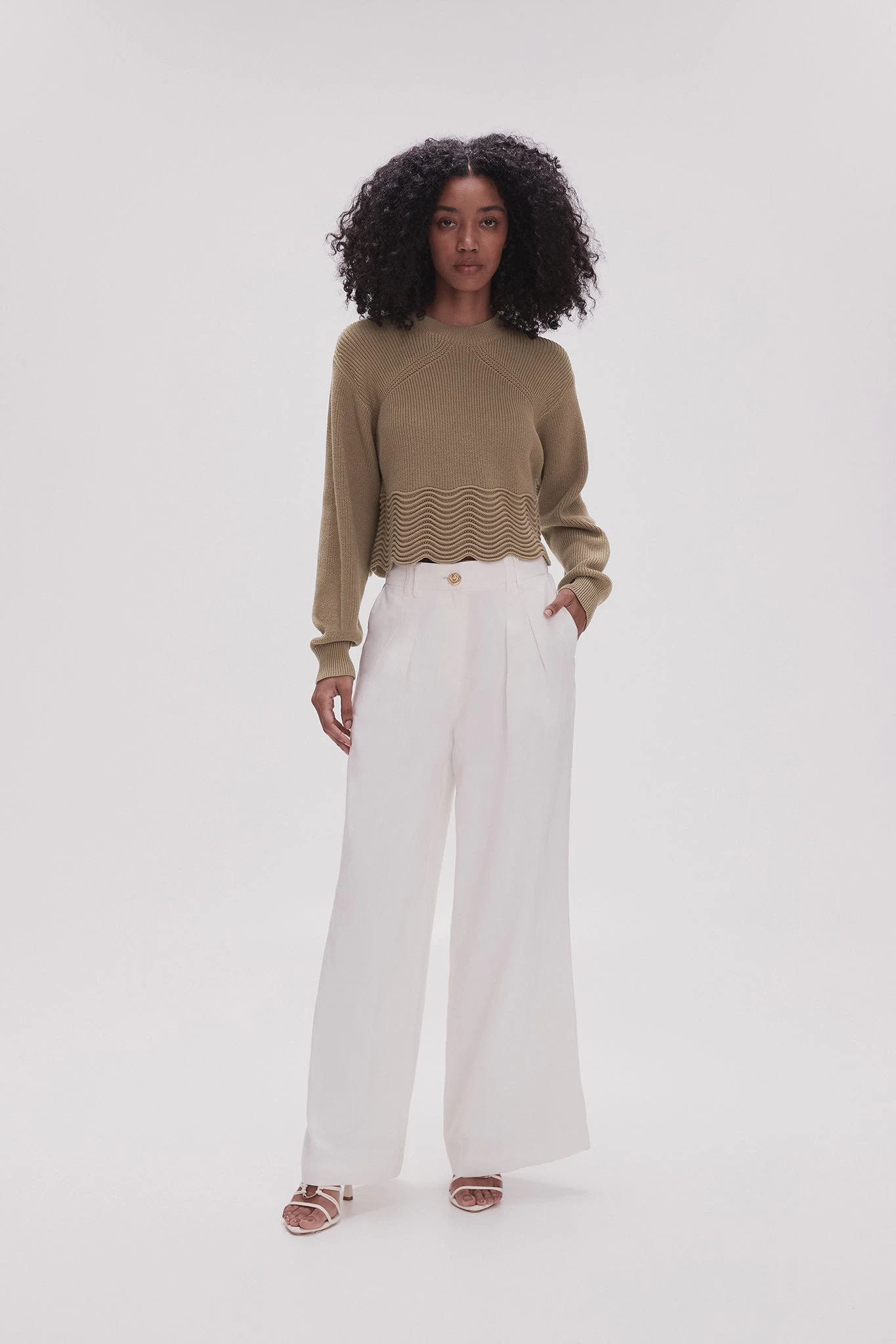 - Curved sleeves with cuffs