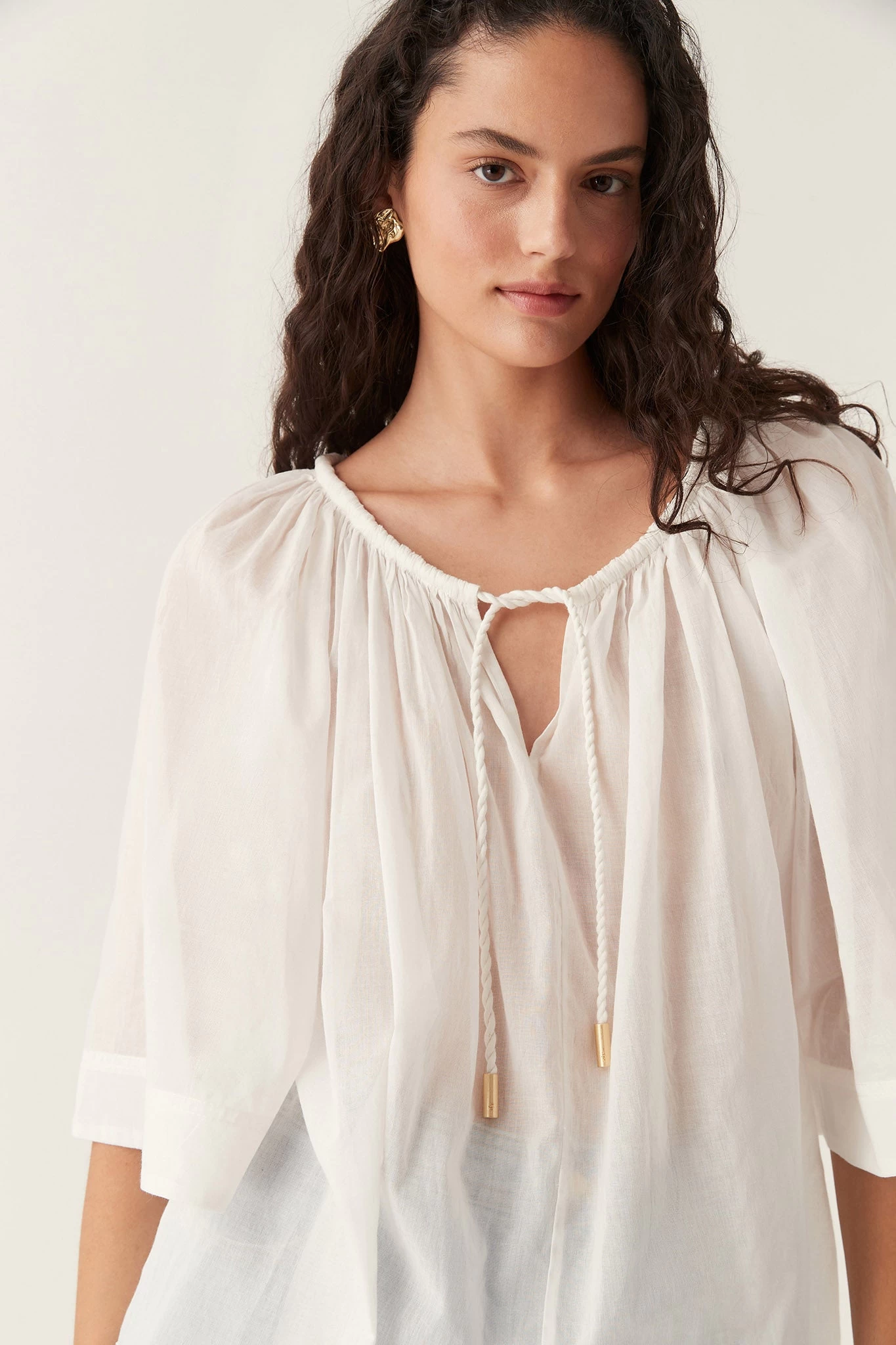 - V-neckline with rope cord detail