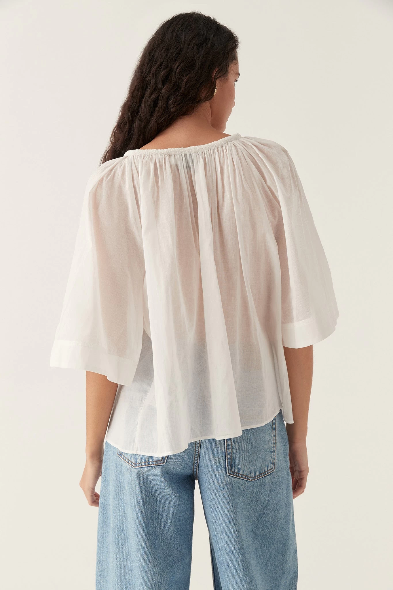 - Flared 3/4 sleeves