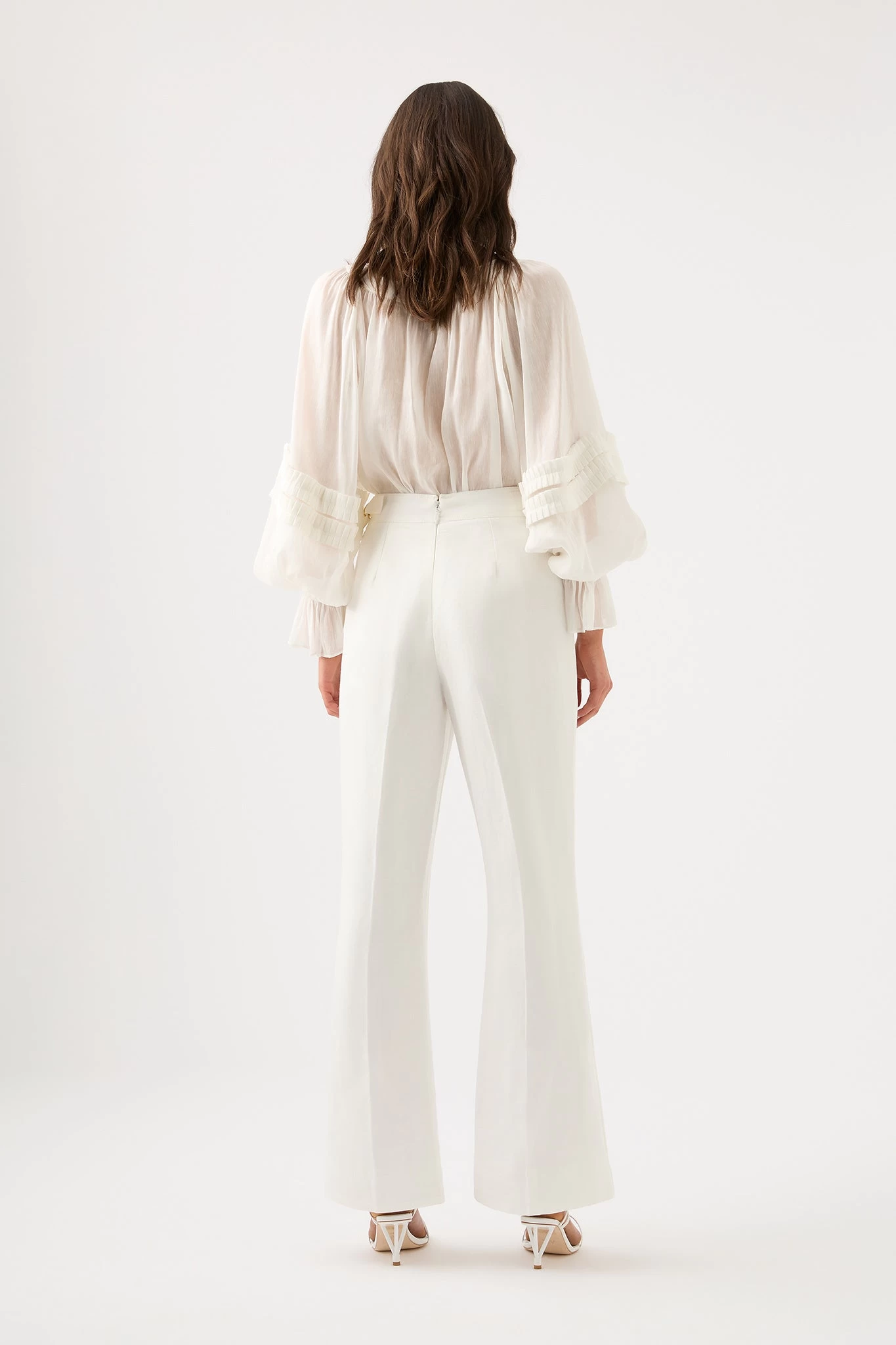 - Flared legs with seams down centre front