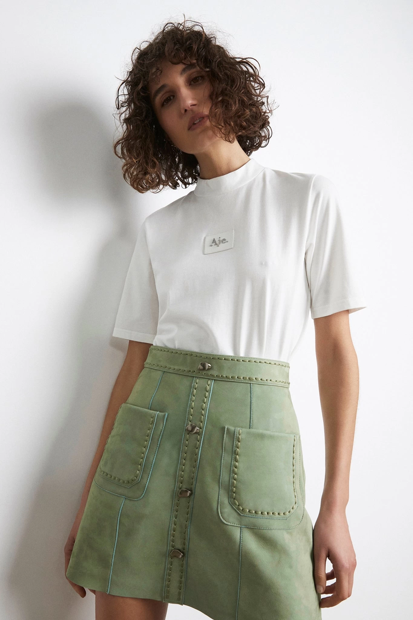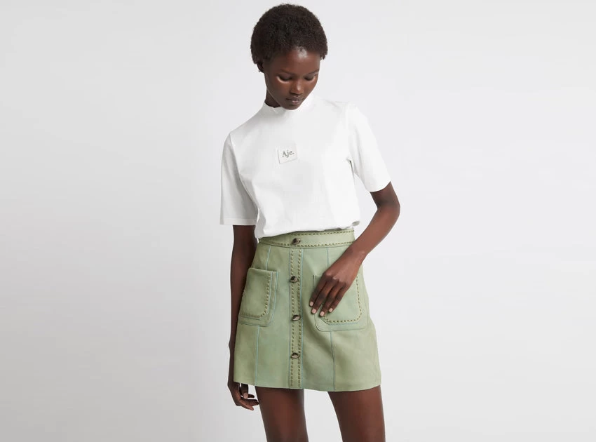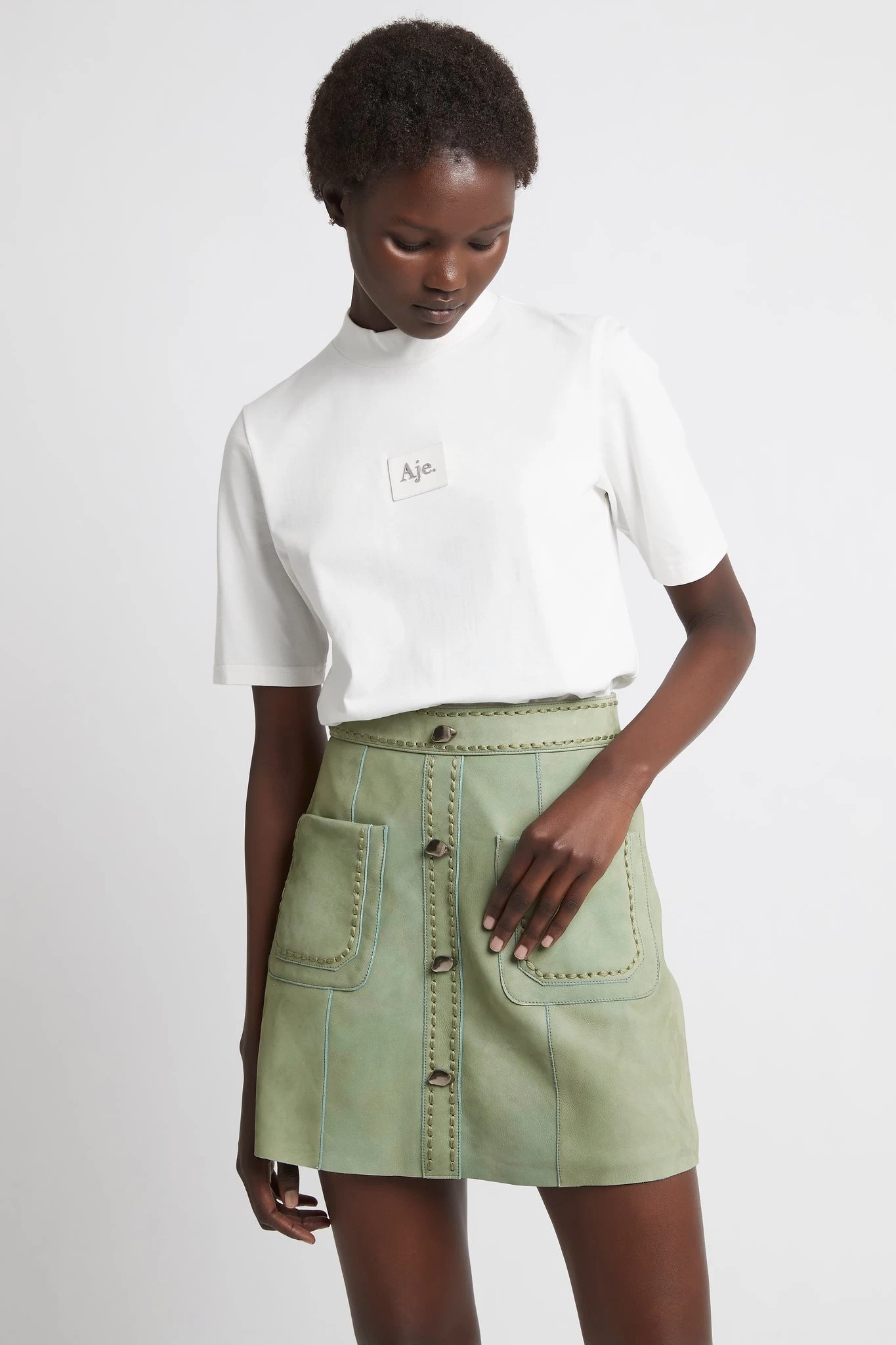 - Contrast leather patch with Aje logo