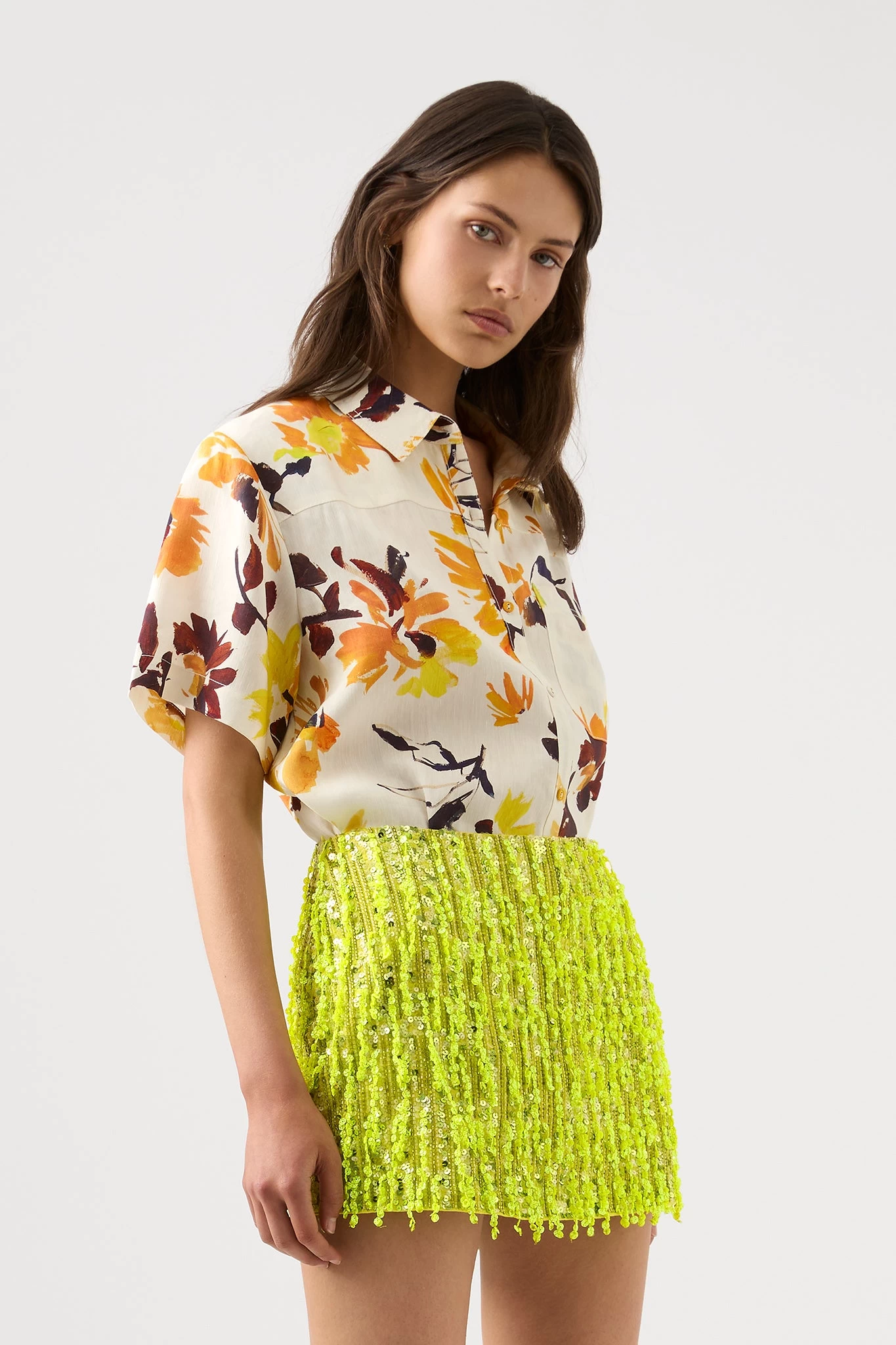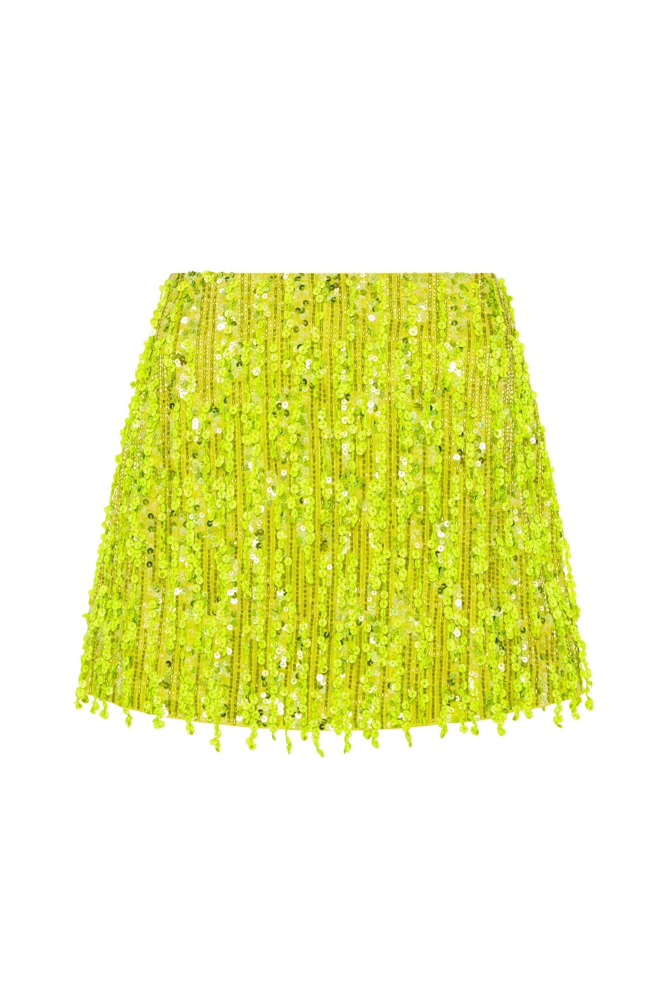 - Sequin embellishments and fringing throughout