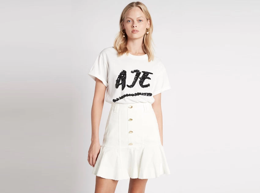 - Flip skirt with raw edge finish