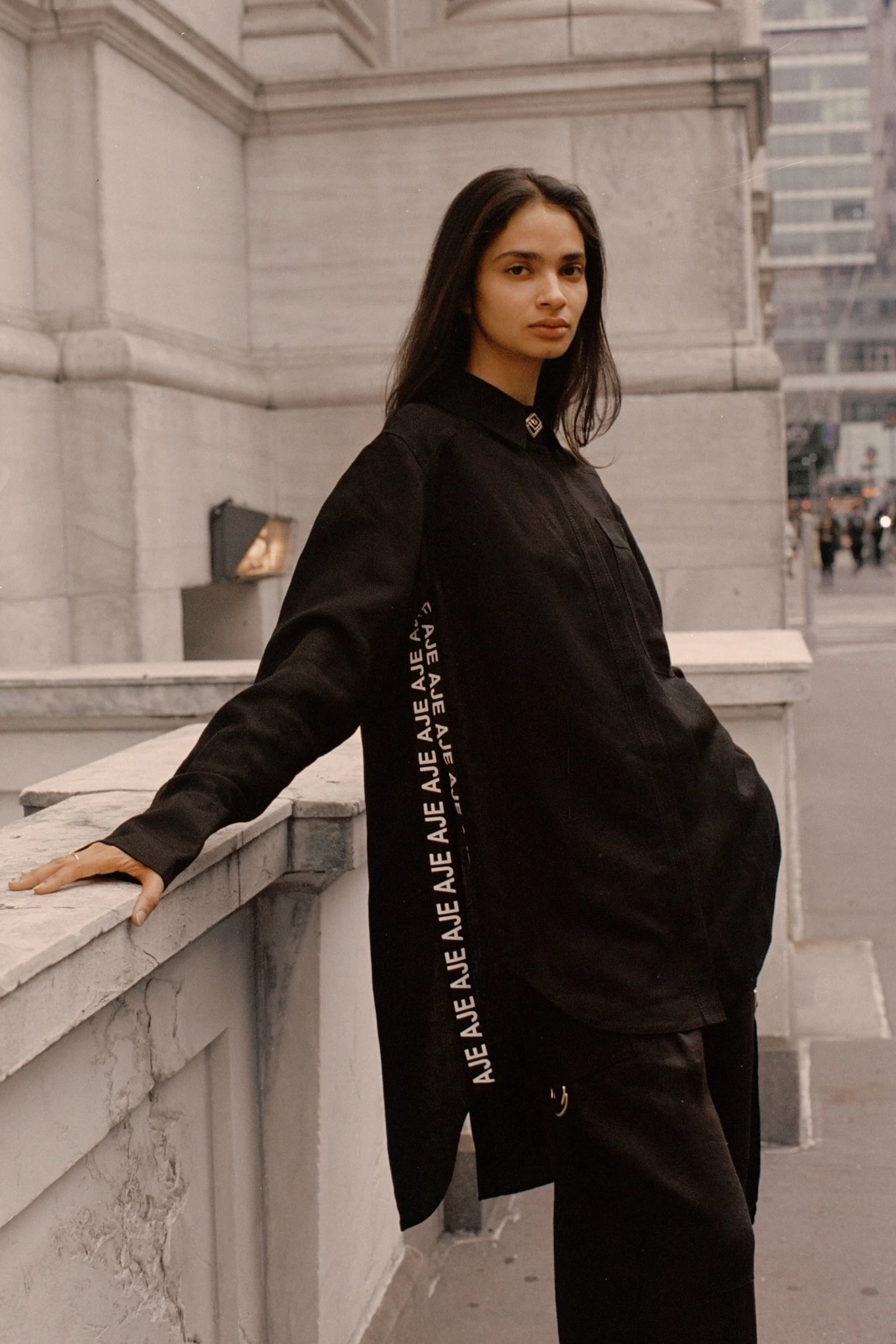 - Elongated back hem with vent