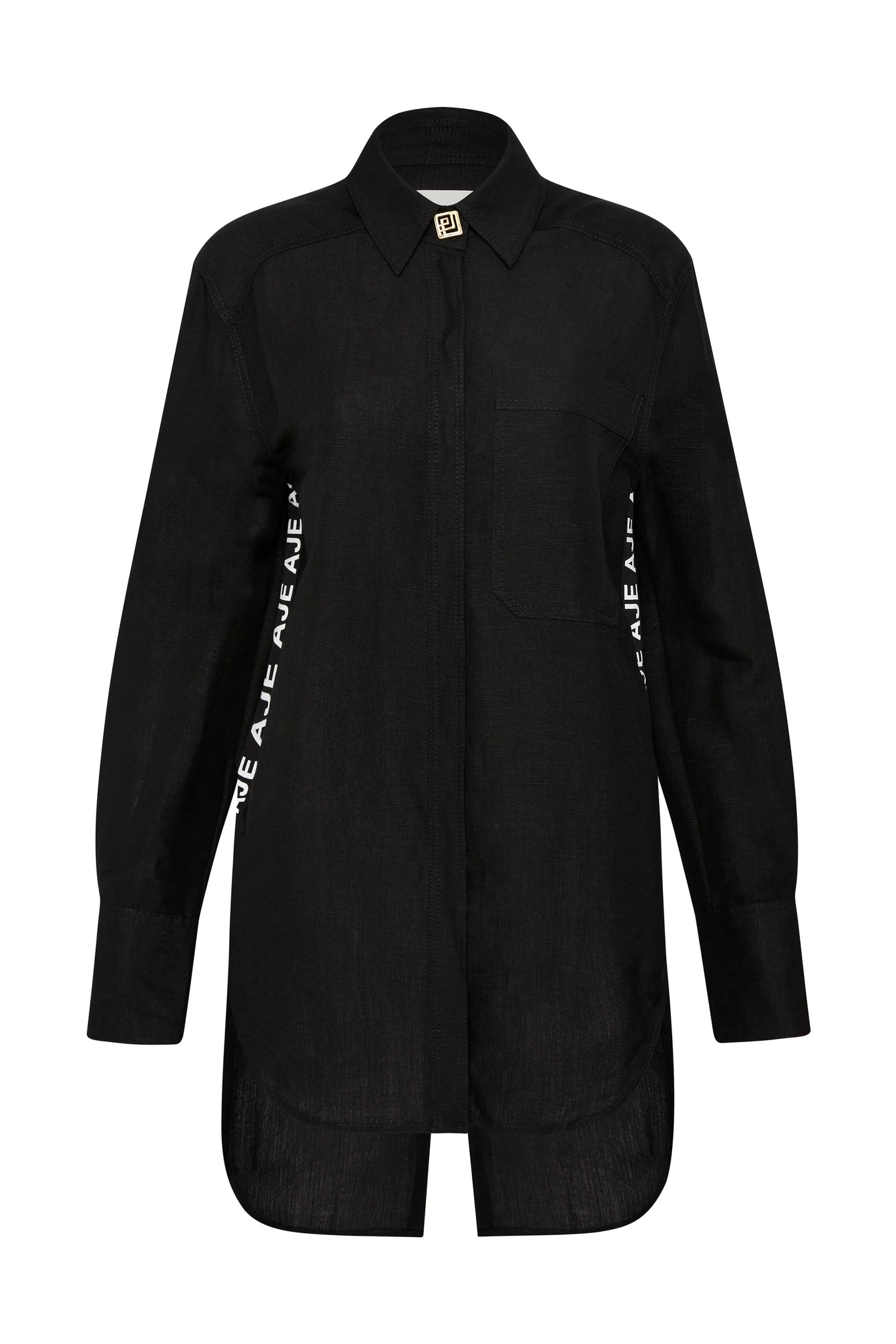 - Side seam splits with logo tape trims