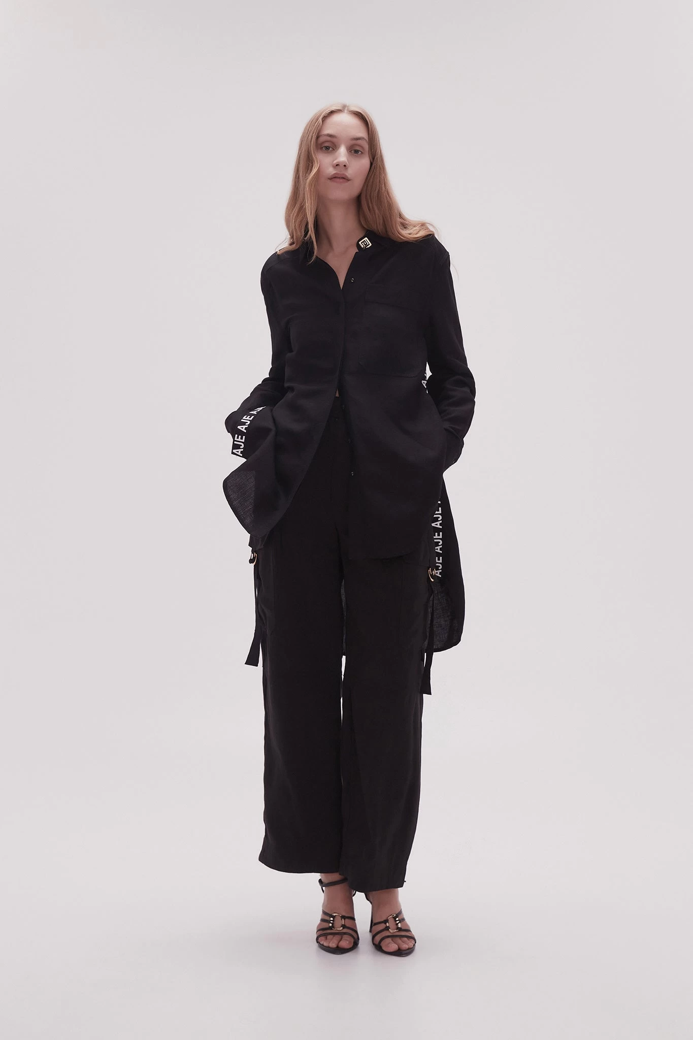 - Long sleeves with exaggerated cuffs
