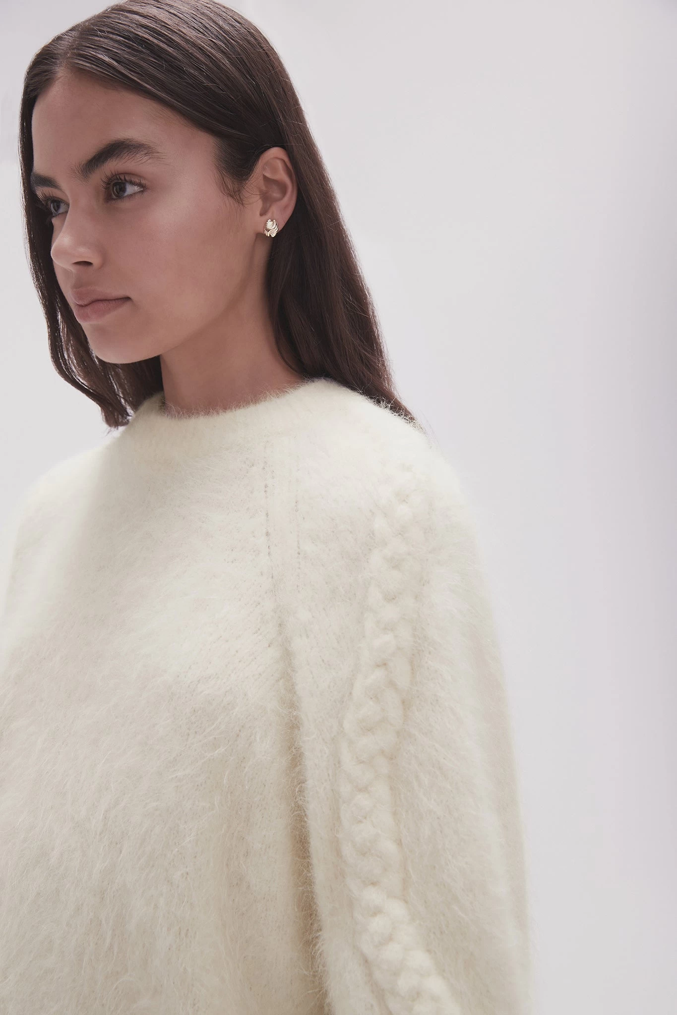 - 59% Alpaca 25% Acrylic 15% Nylon 1% Spandex