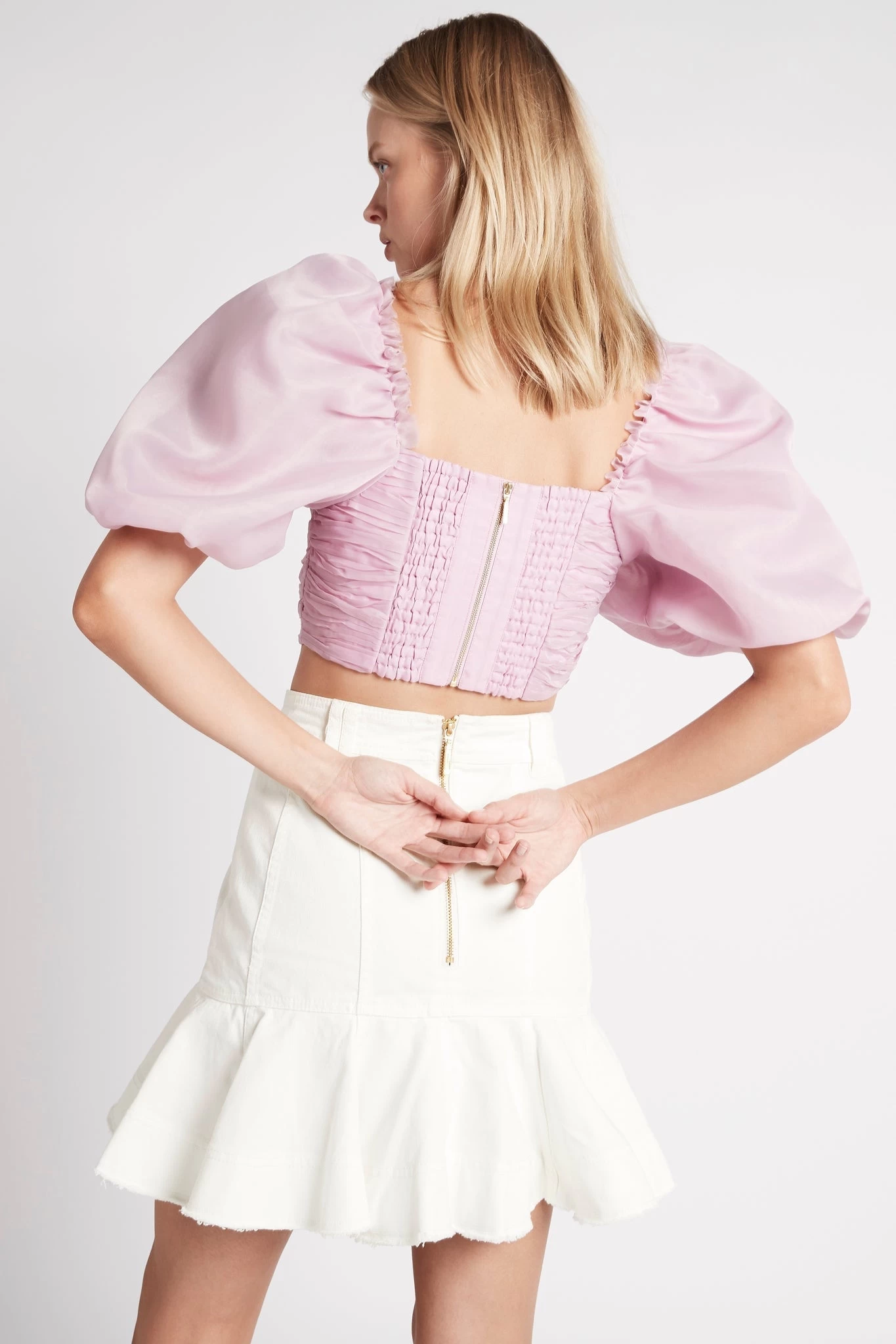 - Zipper closure at back
