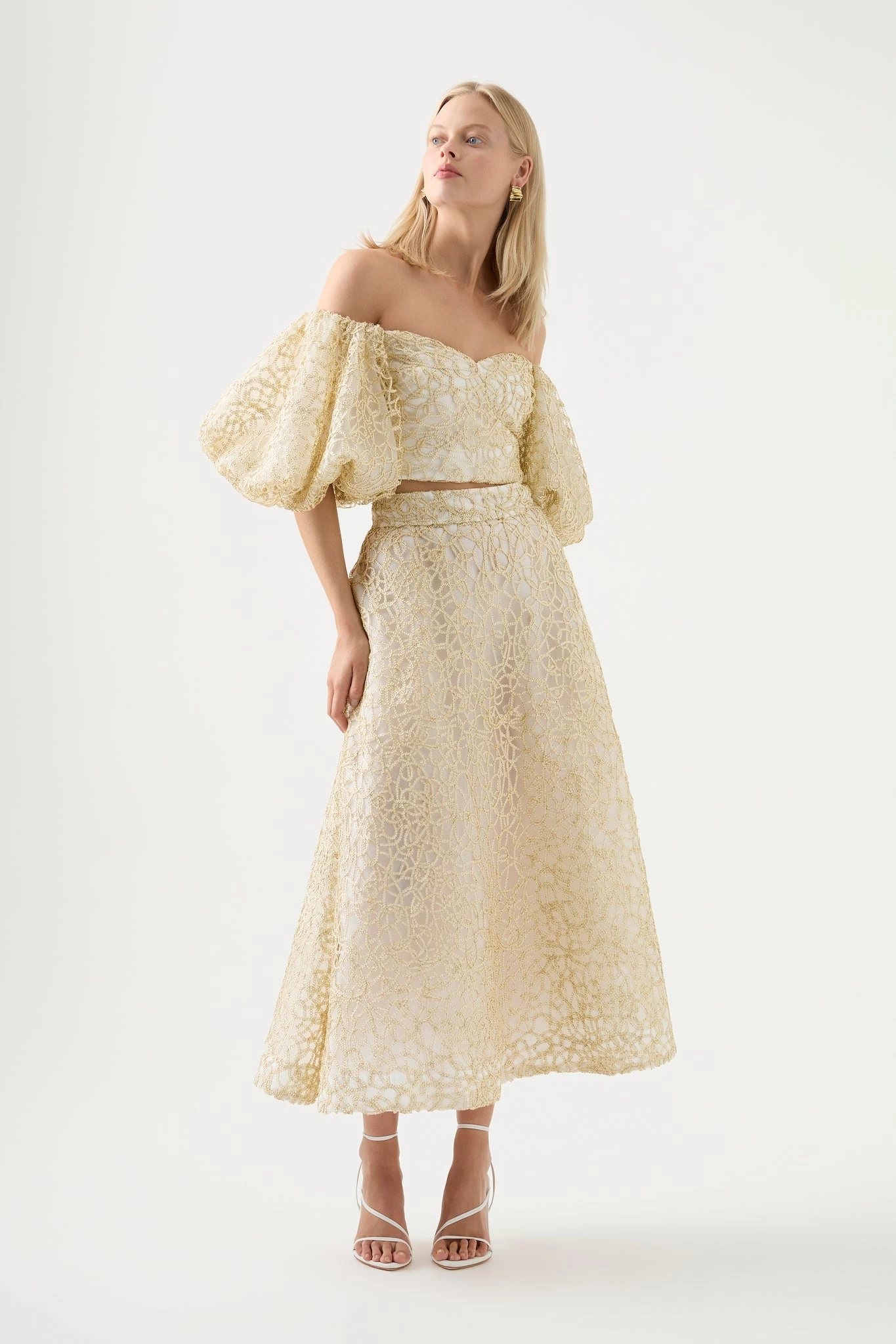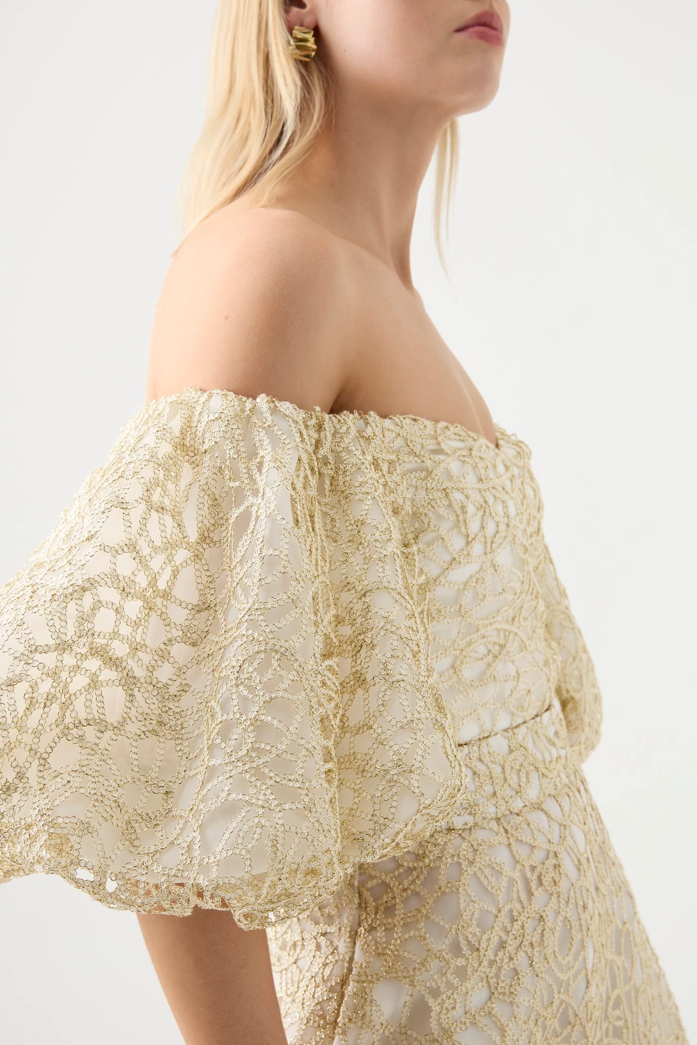 - Cropped bodice with sweetheart neckline