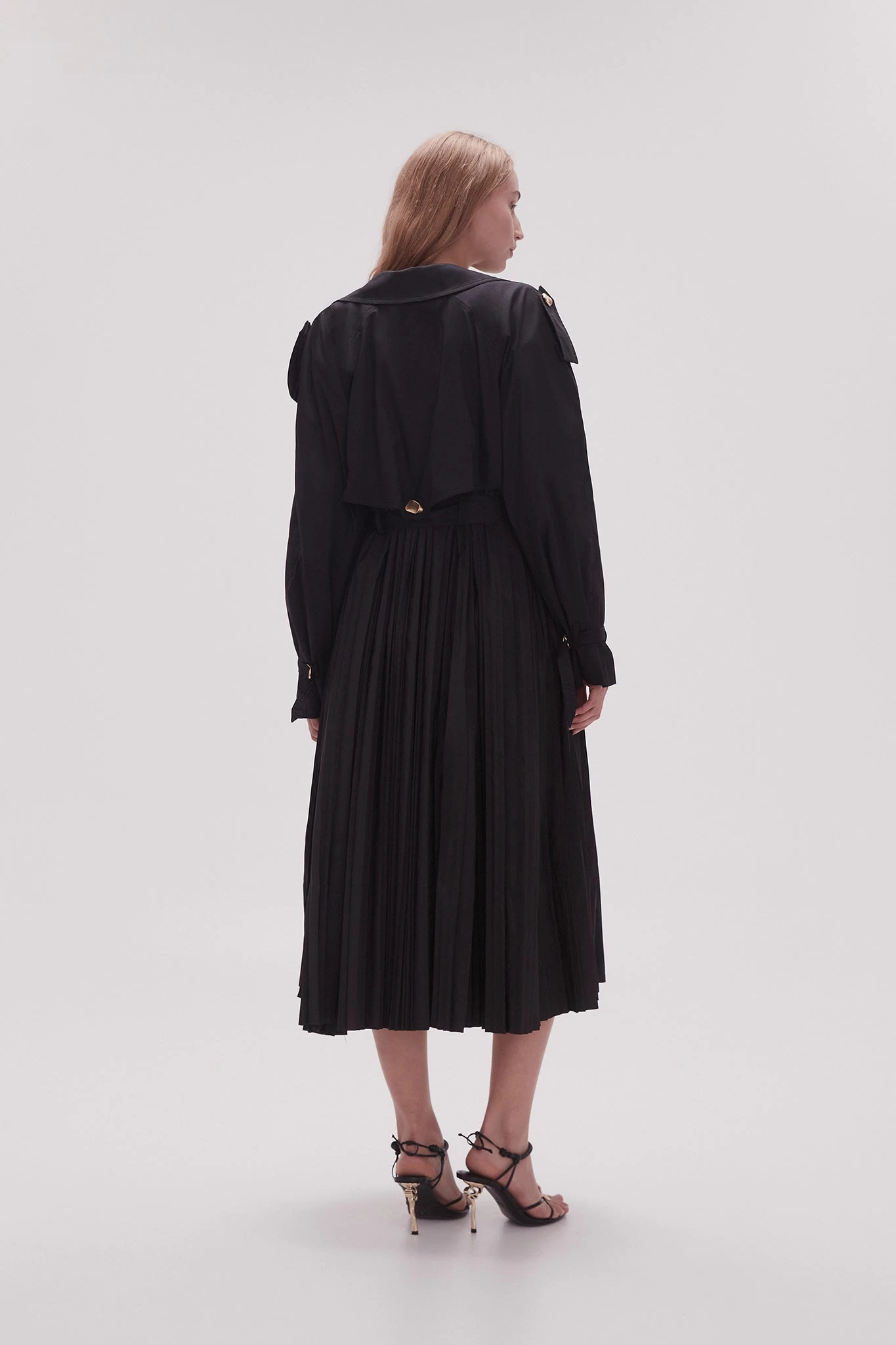 - Pleated back hem panel