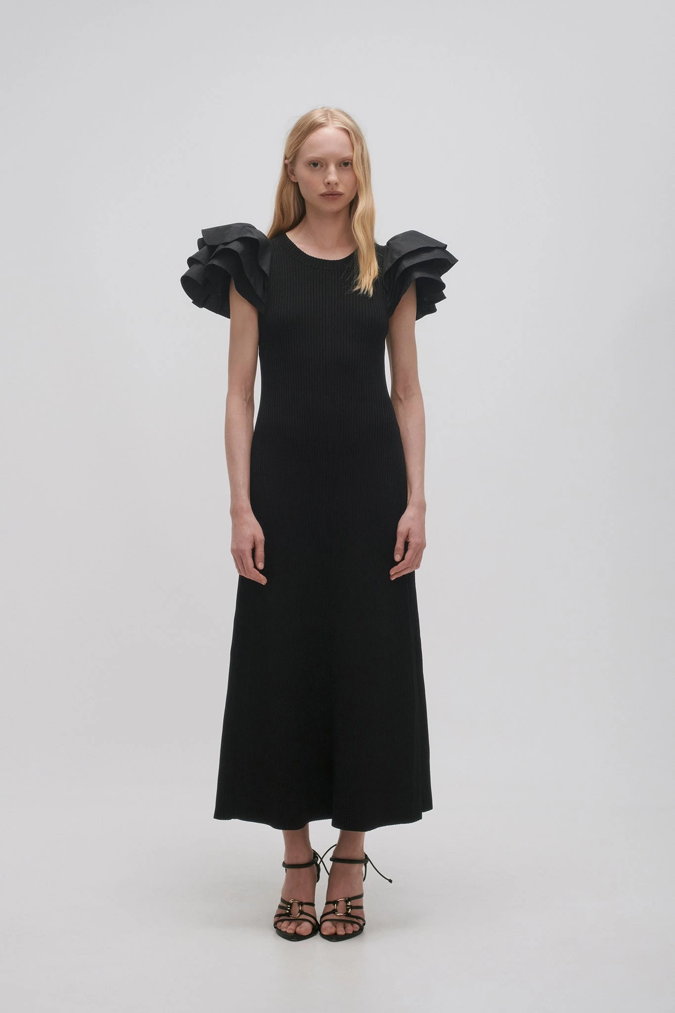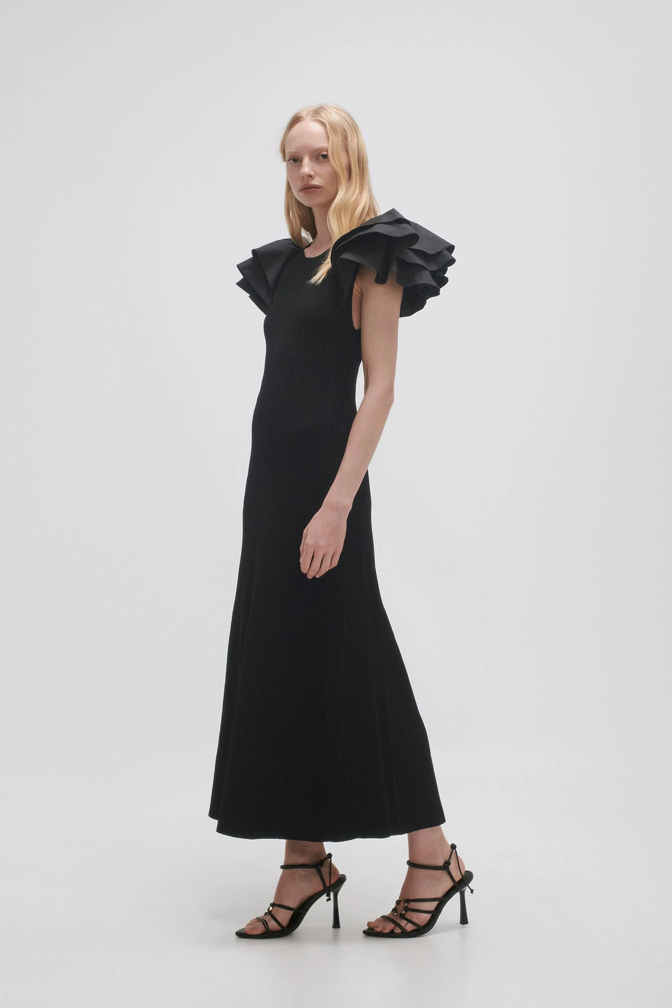 - Layered shoulder frills