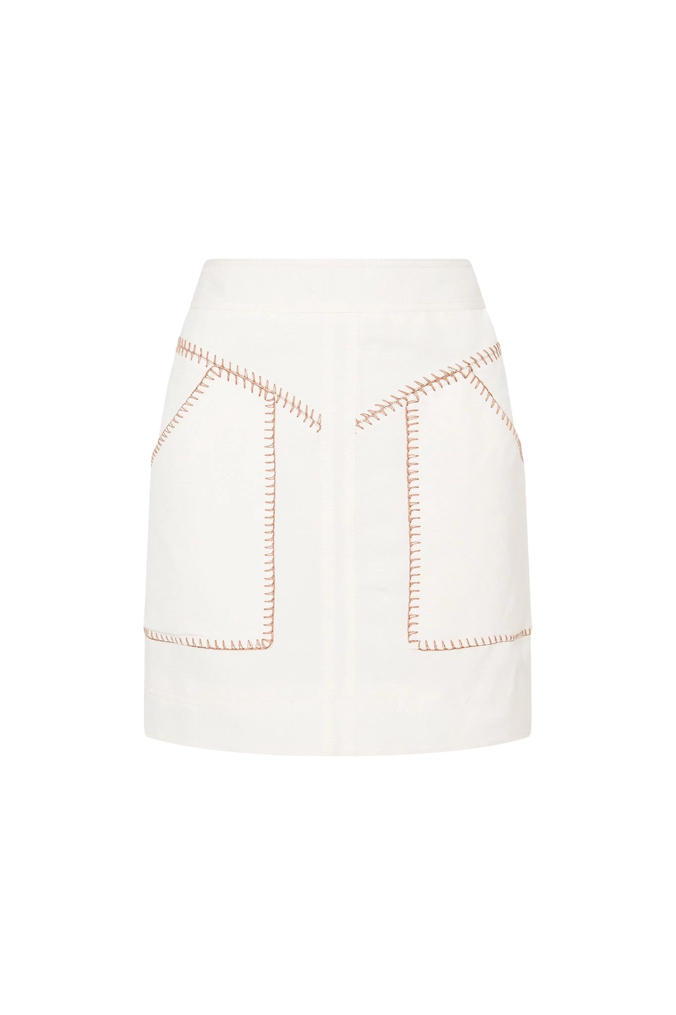 - Contrast barb stitch details throughout