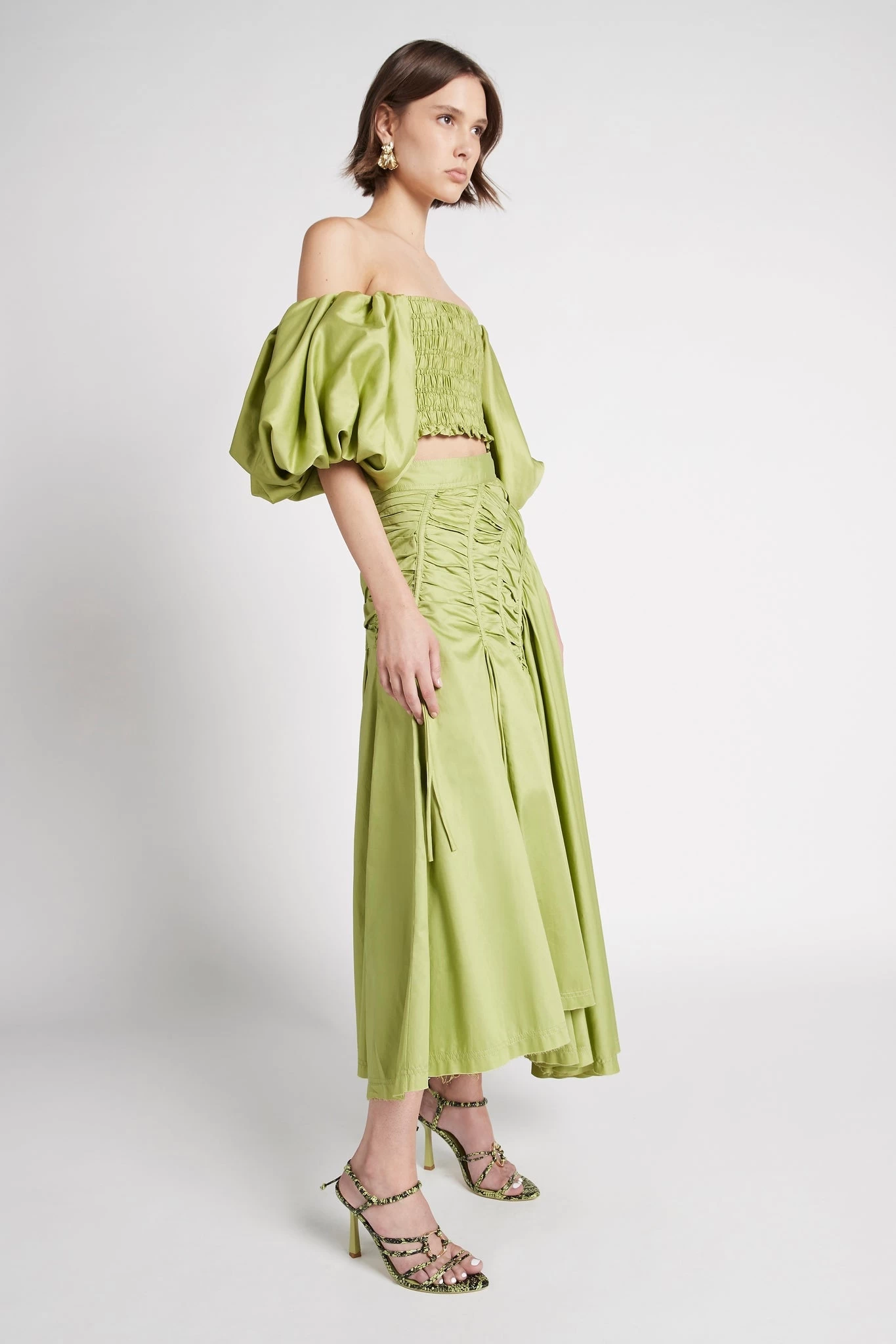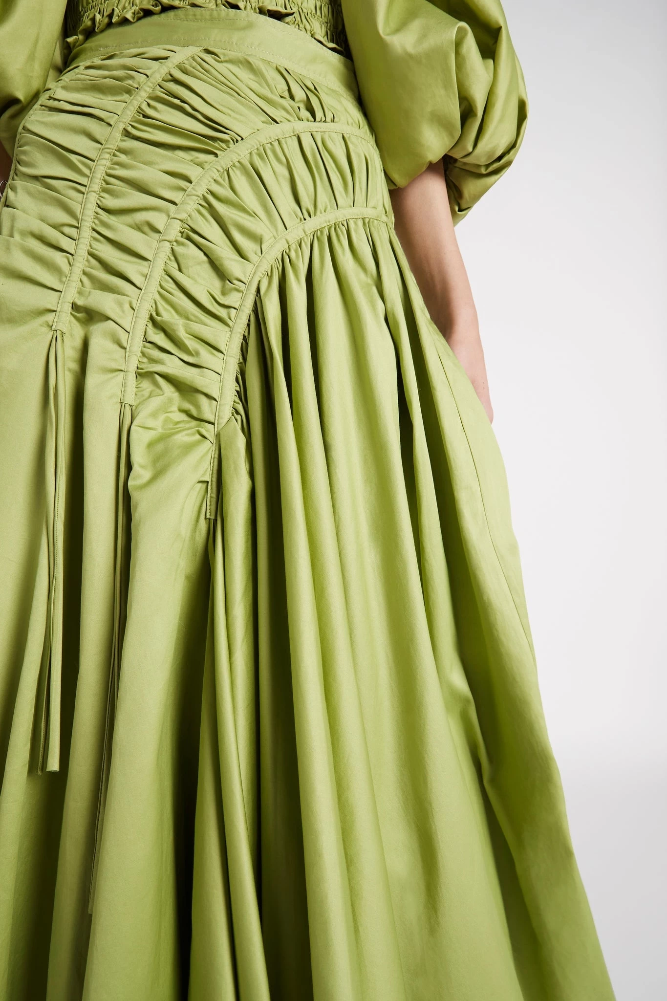 - Gathering throughout skirt