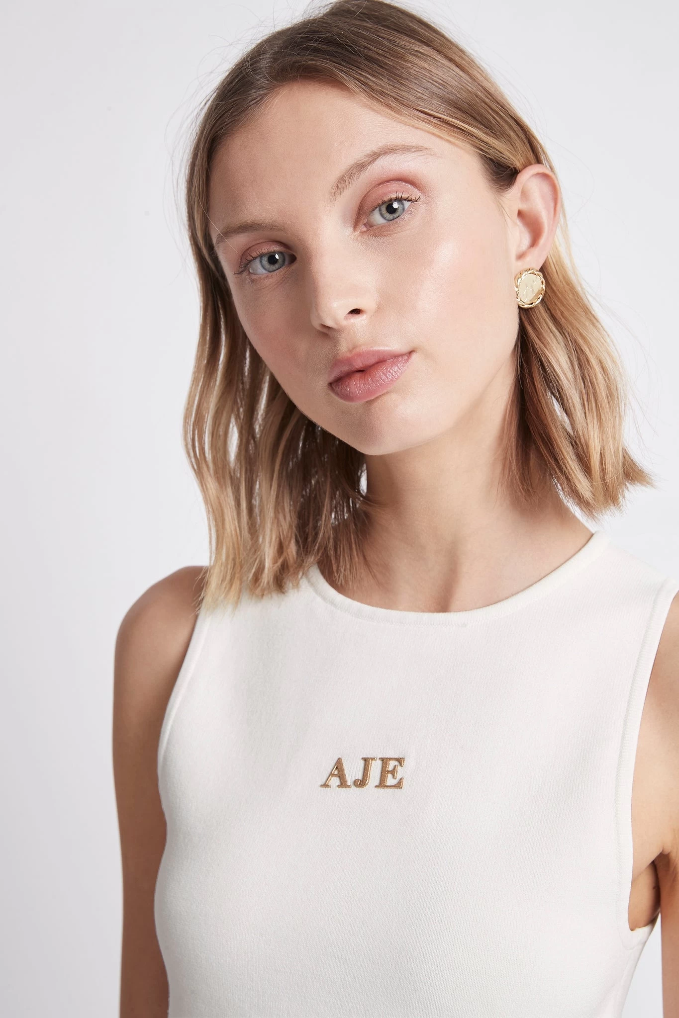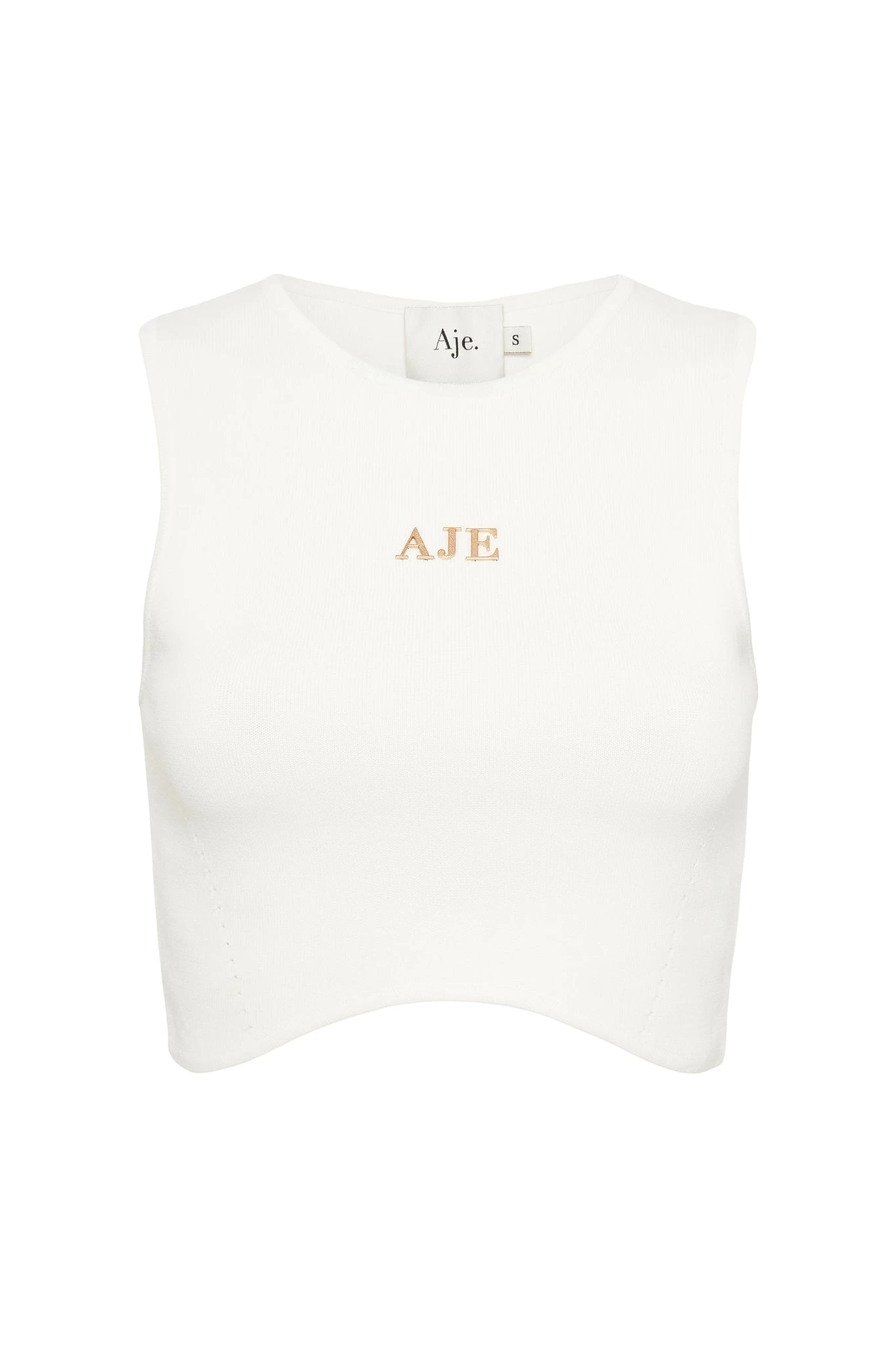 - Aje metal logo, centre of chest