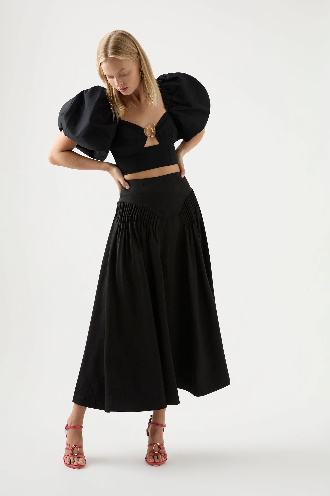- High waisted midi skirt